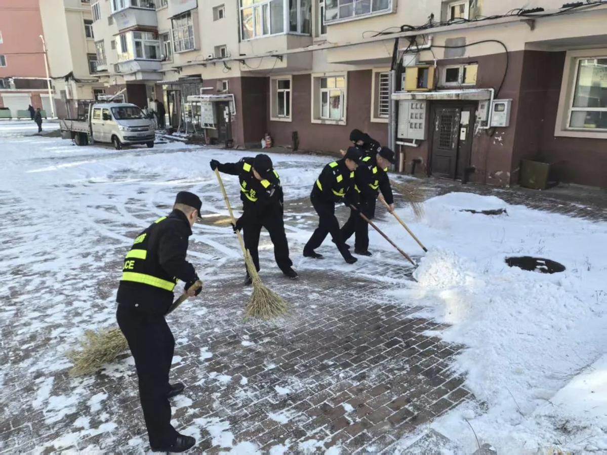 11月9日,鹤岗市公安局积极响应“全民清雪”倡议,组织市公安局机关36个党支部党员民警辅警,赴共建社区开展“携手共建和美家园”清冰扫雪志愿服务,以实干担当保障居民出行安全、畅通。