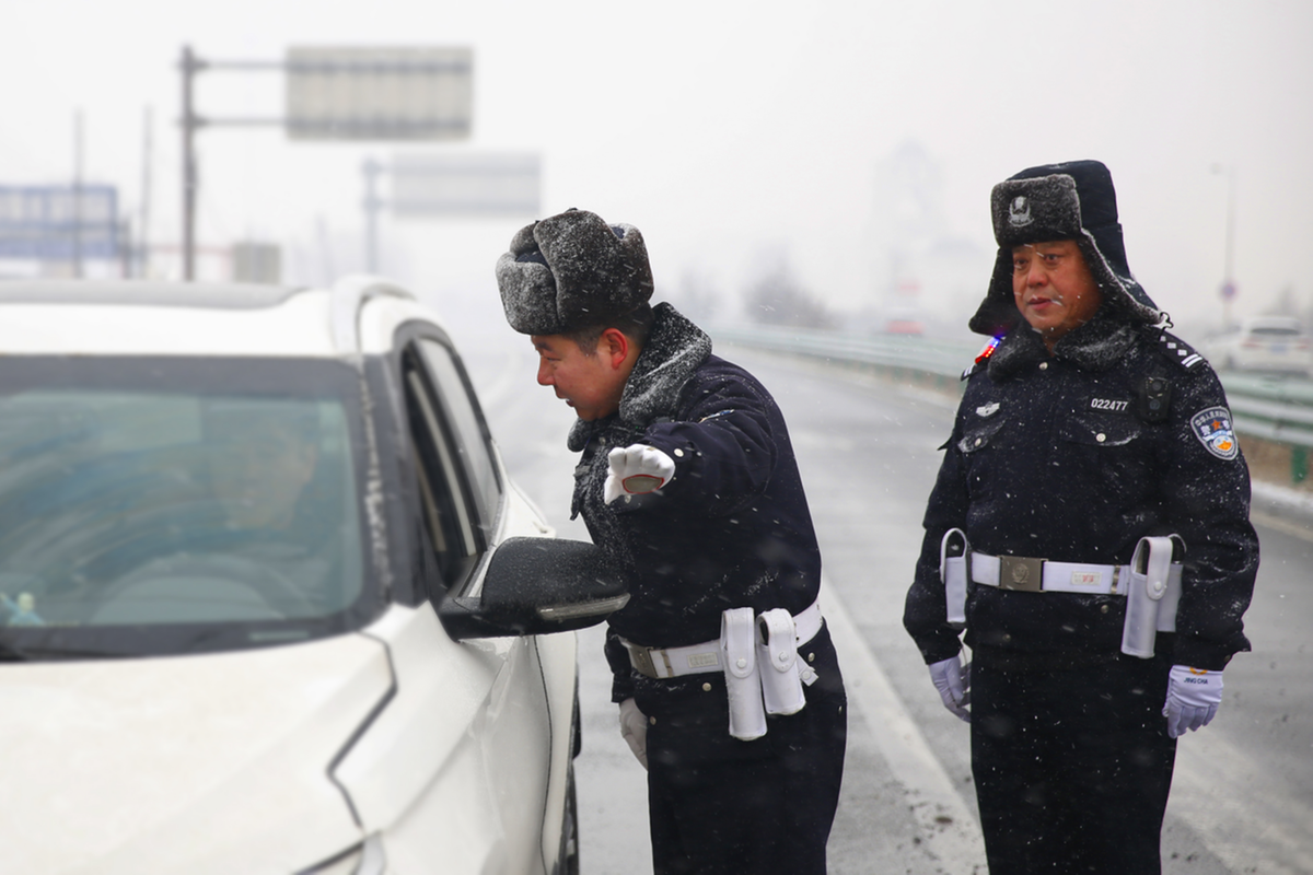 针对降雪后的路面情况,交管部门科学研判、精准发力,全力保障道路通行顺畅。实时整合气象信息、路面监测数据,对易积雪路段、交通枢纽等重点区域动态把控,通过交通广播、导航平台、新媒体平台等渠道,及时推送路况提示和出行建议,引导市民合理规划出行。同时,全警参战指挥交通,实行“分级响应、动态布防”勤务模式,将警力向桥梁、坡道、校园周边等关键部位倾斜,强化交通疏导,提升通行效率。此外,对重点地区增加警力部署,对国省道路实施每20公里对向巡逻机制强化道路安全防控,对6座以上小型客运车辆实施逢车必检,提示全程全员系好安全带,消除安全隐患。在农村区域通过派出所协助管理交通,扩大安全管理覆盖面,最大程度降低降雪对交通的影响。