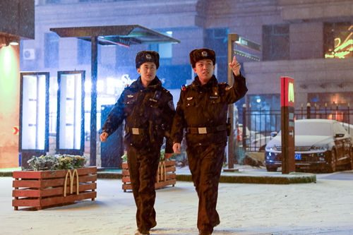 为全力做好降雪天气巡逻防控,织密平安防护网,市公安局组织巡特警支队开展多维度、拉网式隐患排查。依托“三级巡逻、四区联动、点线支撑、全域防控”大巡逻布局,加强景区景点、商圈广场、交通枢纽等重点部位的巡逻防控力度,全天候聚焦坡道弯道、易结冰路段,加强巡逻频次与警示提示,严防各类突发事故。