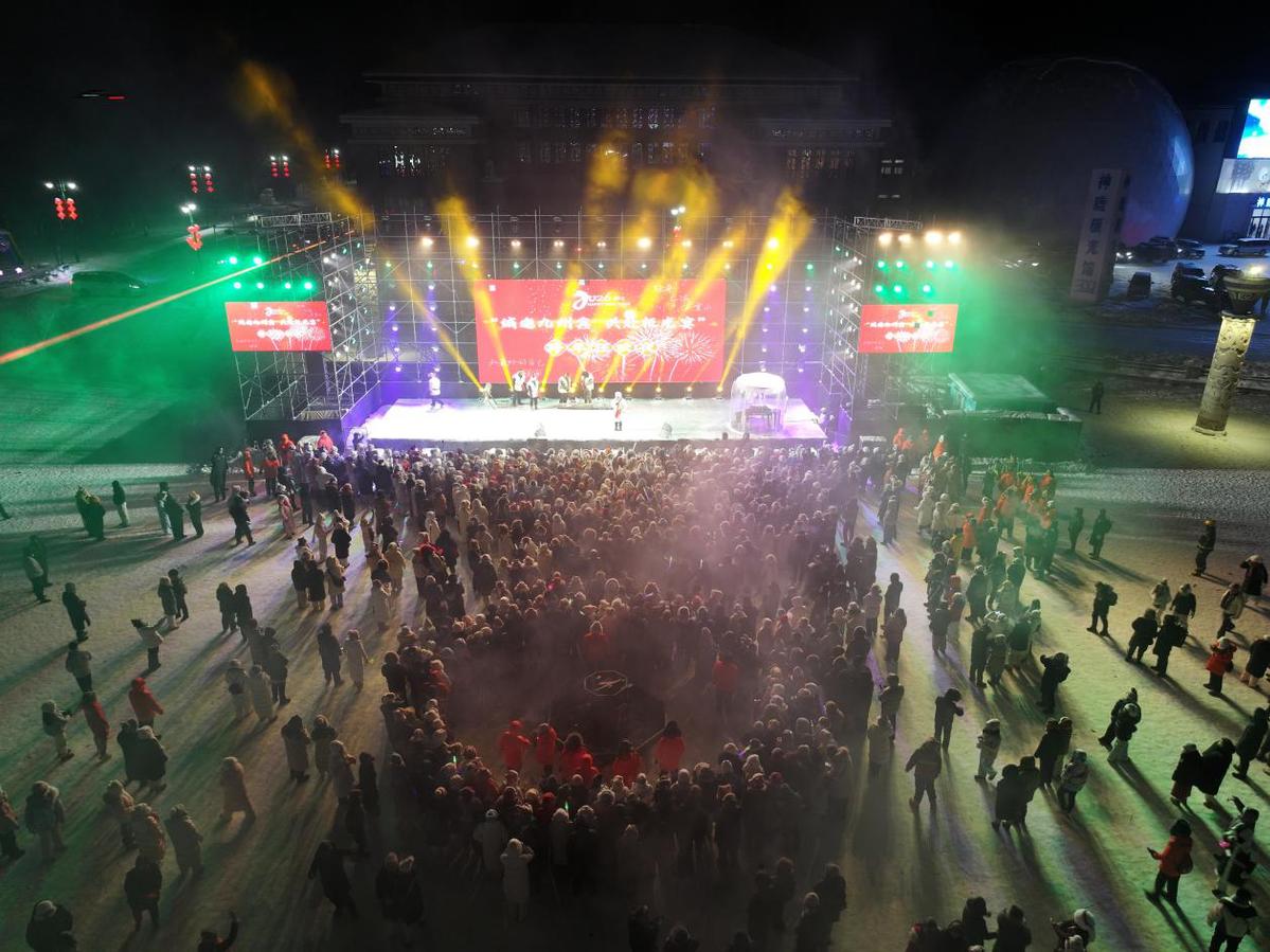 萨满舞蹈祈福后,熊熊篝火被点燃,居民和游客围着篝火尽情舞动,在冰天雪地中释放热情与活力,共同迎接2026年的到来。在零点钟声敲响的瞬间,绚丽的烟花在北极星广场上空绽放,光影与地上的篝火相映成趣,将活动推向高潮。“刚刚那个篝火晚会,还有刚刚的节目,特别带劲,氛围特别好,所有人在一块唱歌,烟花秀非常好看,我觉得大家都可以来这玩,北极漠河值得一来。”来自河北的游客赵慧丹激动地表示。