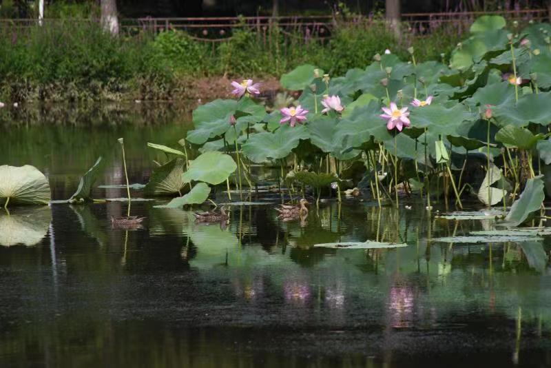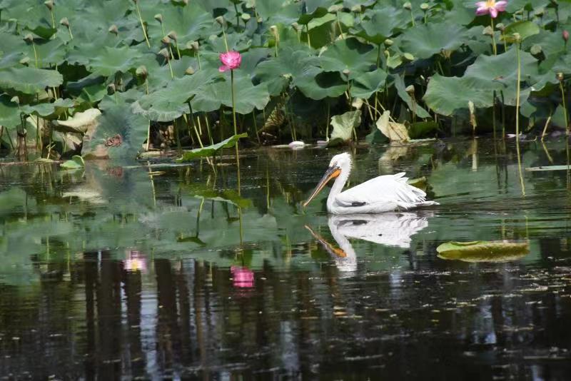 现在正是北方森林动物园观赏荷花的最佳时间,湖光山色美不胜收。这真是动物王国有奇景,鹈鹕野鸭共和谐,孔雀仙鹤湖上飞,荷花开处满园香。(中国日报黑龙江记者站)