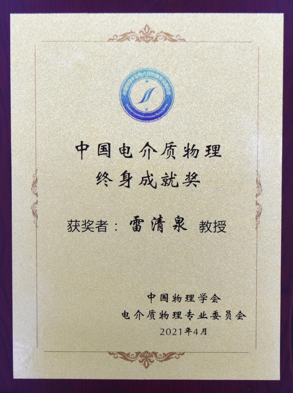 4月9日至12日,由中国物理学会电介质物理专业委员会组织的第十八届全国电介质物理、材料与应用学术会议暨第二十届全国电子元件与材料学术大会在西安召开。哈尔滨理工大学雷清泉院士喜获“2021年度中国电介质物理终身成就奖”。该奖项是中国物理学会电介质物理专业委员会于2014年设立的奖项,专门用于表彰为我国电介质物理理论和应用发展做出了卓越贡献的科学家,本年度全国仅2人获此殊荣。