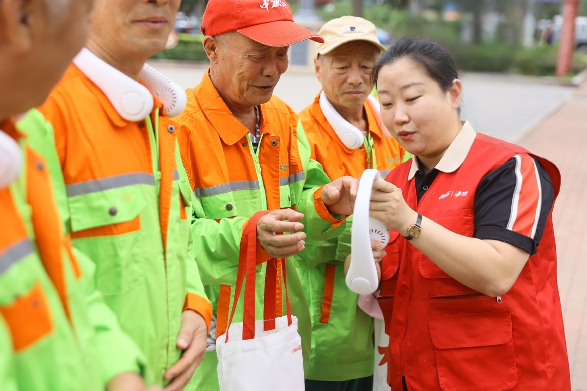 活动当日,当一个个清凉包送到环卫工人手中时,一声声感谢,也让在场的志愿者们感到欣慰。“这个冰袖好啊,天热的时候能降温”“毛巾也好,休息的时候能擦擦汗”“这水不错,这两天又热了,补水避免中暑”。此起彼伏的讨论声,也说明这贴心的活动得到了环卫工人们的认可。