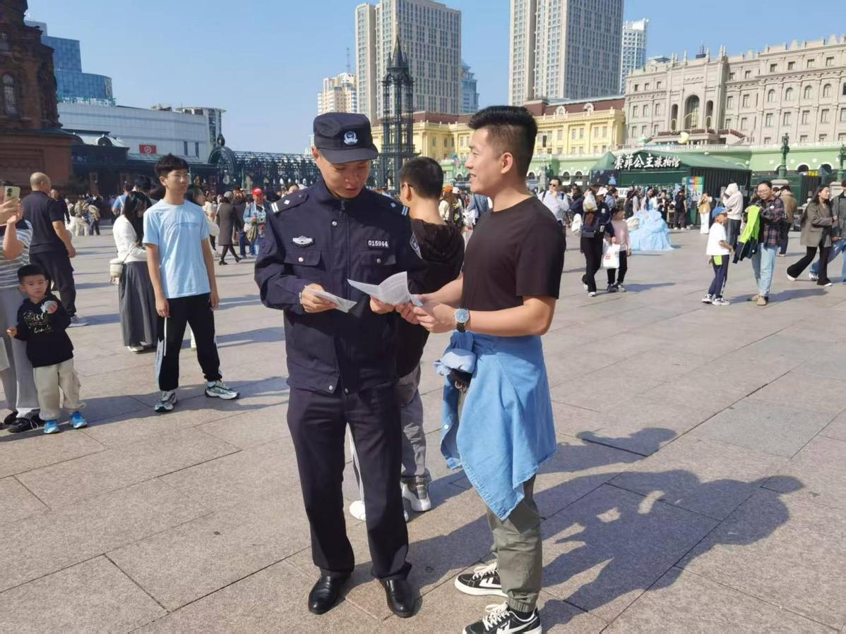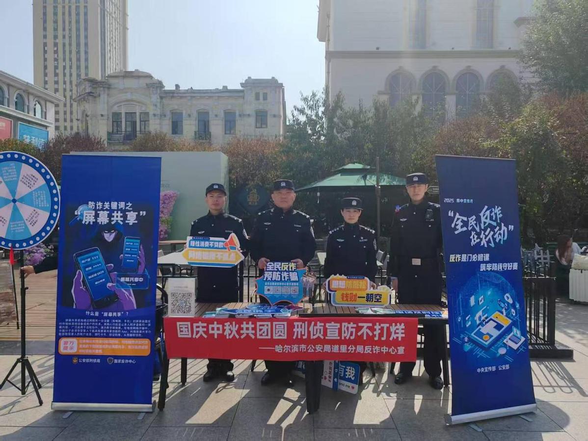 国庆、中秋双节期间,哈尔滨市公安局道里分局反诈中心创新“警银联动”宣传模式,在中央大街、建筑艺术广场等城市地标开展沉浸式反诈宣传活动,将反诈知识融入游览场景,切实筑牢假期文旅安全防线,为游客“钱袋子”上好“安全锁”。