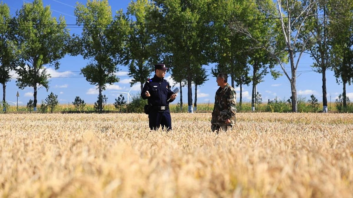金秋时节,稻谷飘香,黑土地上处处洋溢着丰收的喜悦。为确保秋收生产安全有序进行,保障农民群众劳动成果和生命财产安全,鹤岗市公安局创新工作举措,深耕秋收警务工作,将平安守护延伸到田间地头、村屯院落,以“警察蓝”全力护航“丰收黄”,为乡村振兴注入强劲的公安动能。