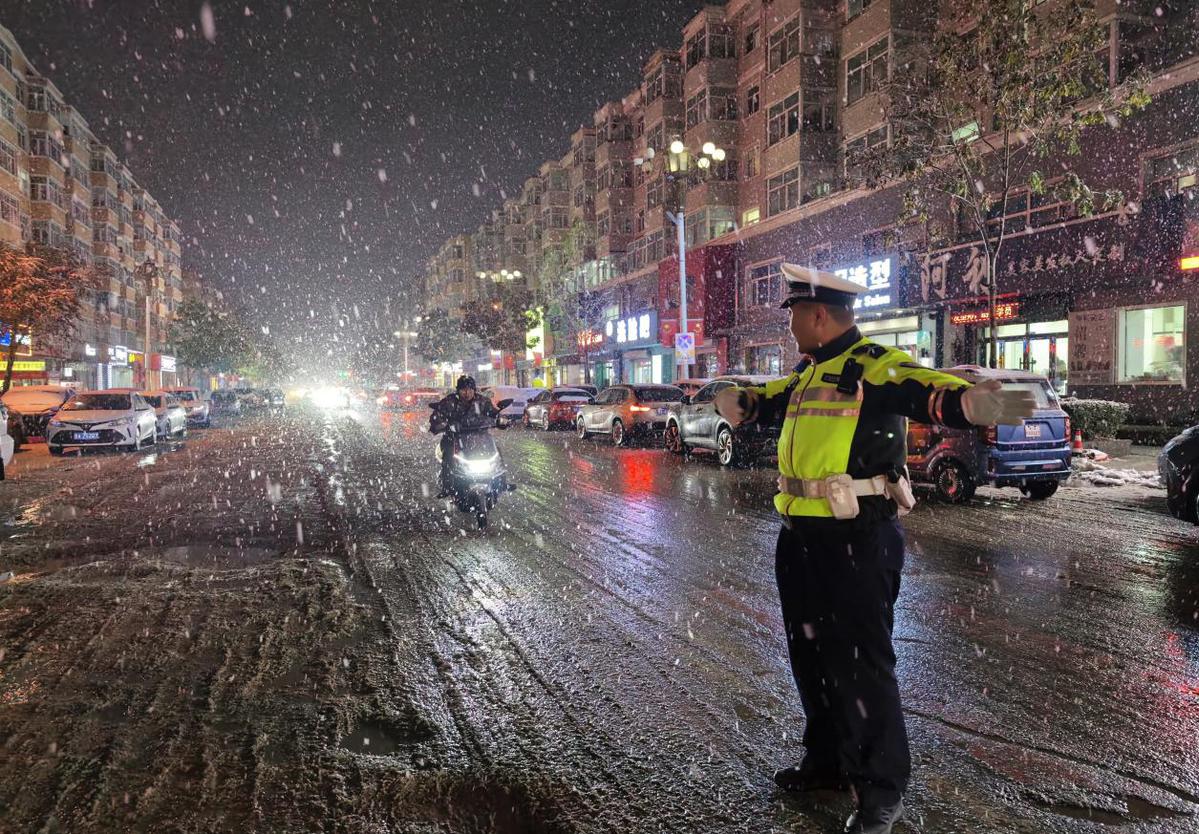 10月15日清晨始,巴彦县迎来秋冬之交首场降雪,雪花持续飘落,路面迅速积起薄雪,部分路段渐生薄冰,能见度大幅降低,给群众出行安全带来严峻考验。巴彦县公安局闻雪而动、以雪为令,立即启动雨雪天气应急处置预案,全警下沉一线,用“警徽蓝”为群众筑起出行“安全屏障”。