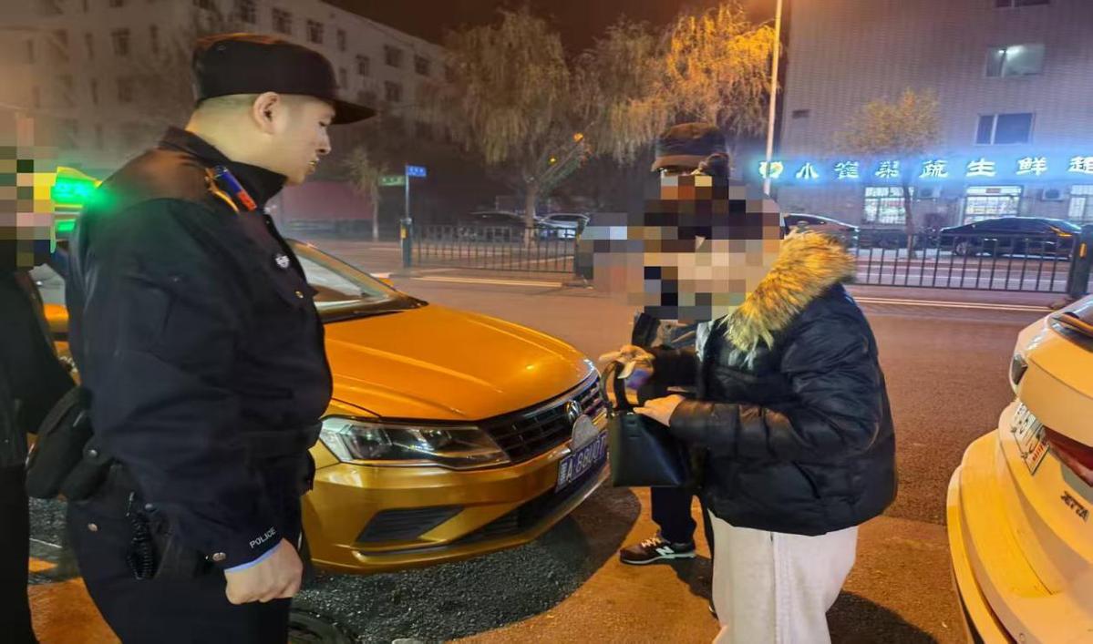 当晚,焦凌擎与曹金岭巡逻至辖区某超市门口时,一名神色慌张的女子急切上前求助,称自己在购物过程中不慎遗失随身背包,包内装有1000元现金、多张银行卡及身份证等关键证件,若无法找回不仅将造成经济损失,后续补办也将带来诸多不便,情绪几近崩溃。面对群众焦急无助的情形,民警迅速安抚其情绪,随后陪同女子返回超市内部,细致询问其活动轨迹,并迅速展开查找。经过细致排查,他们判断该女子在下车时,很可能将背包遗落在了所乘的出租车后座上。民警迅速通过出租车管理平台查询车辆信息,并在最短时间内联系上当班司机。经核实,司机确认在车内发现一个无人认领的背包,会立即驱车将物品送回。十几分钟后,出租车抵达现场,司机亲手将完好无损的背包交还失主。女子当场清点物品,确认分文未少,激动不已,紧紧握住民警的手连声道谢:“太谢谢你们了!要是没有你们这么负责地帮我找,我真不知道该怎么办。你们真是老百姓的贴心人!”