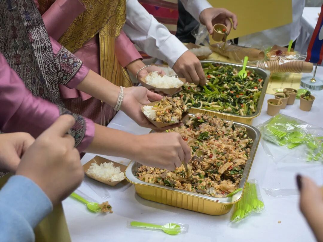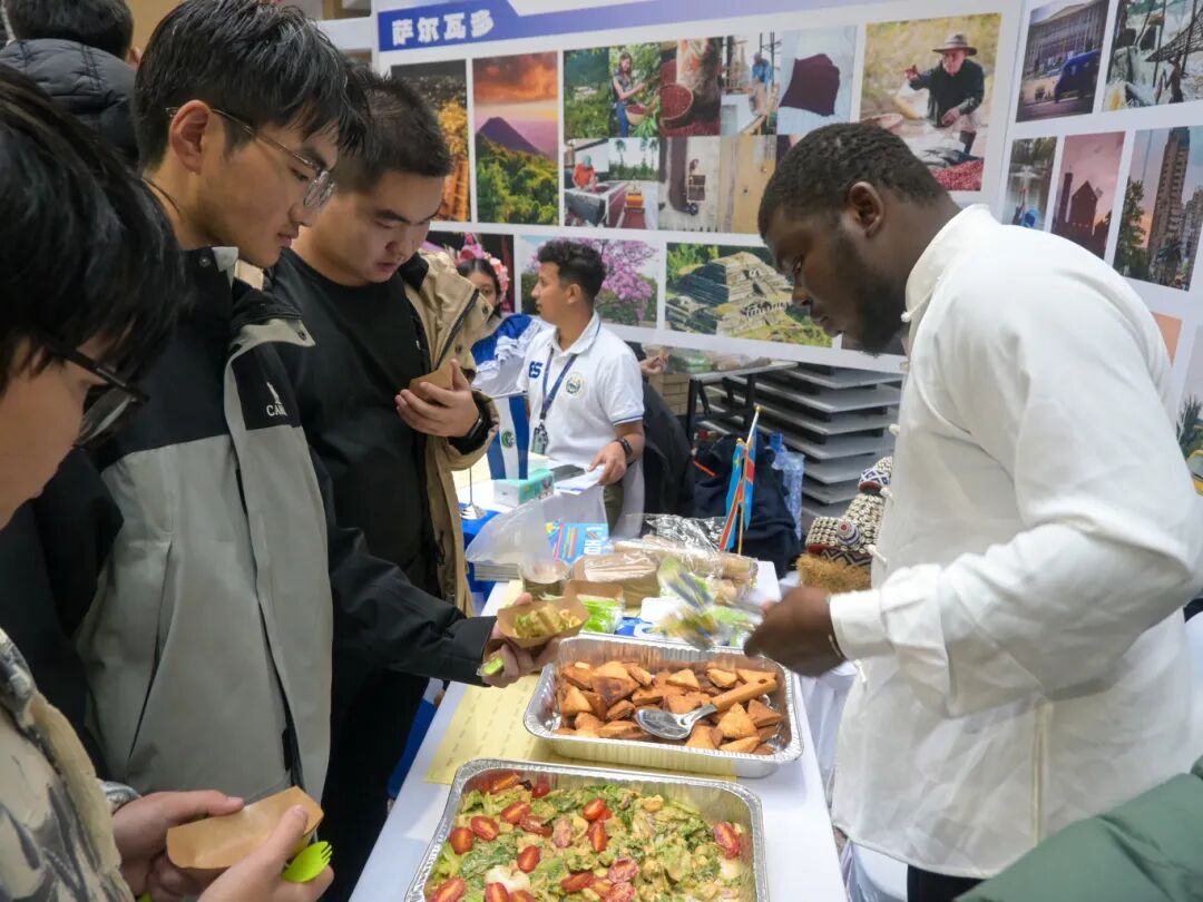 美食区人头攒动,成为文化交流的首个窗口。俄罗斯留学生带来罗宋汤、奥利维尔沙拉等十六道传统佳肴,泰国打抛饭、韩国五花肉包饭、印度尼西亚仁当肉等特色美食备受青睐,萨尔瓦多花生饮料、摩洛哥薄荷茶、蒙古咸味奶茶等饮品香气四溢,让师生们在味蕾体验中直观领略各国风土人情。