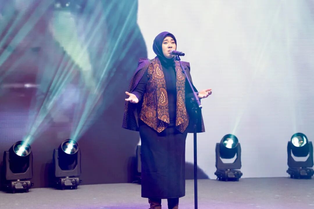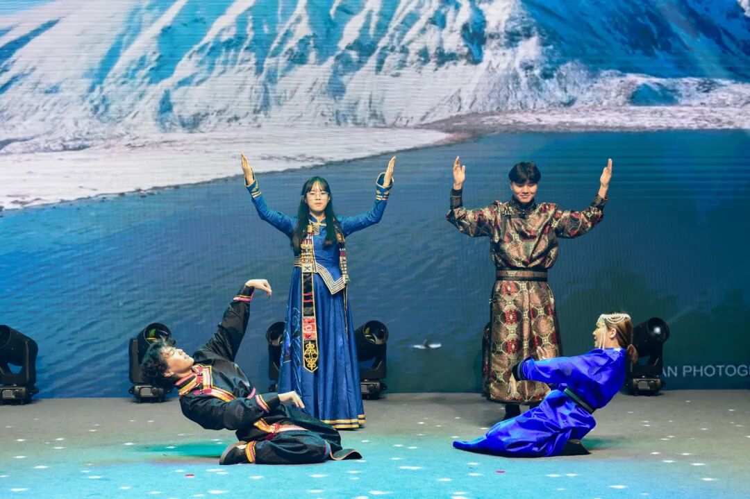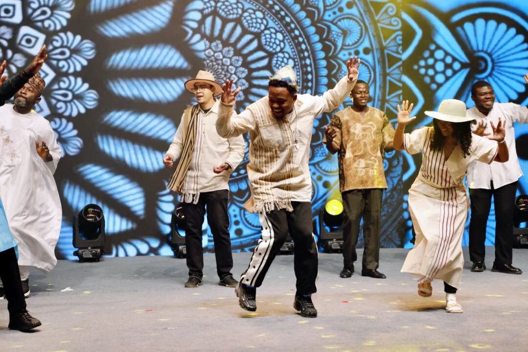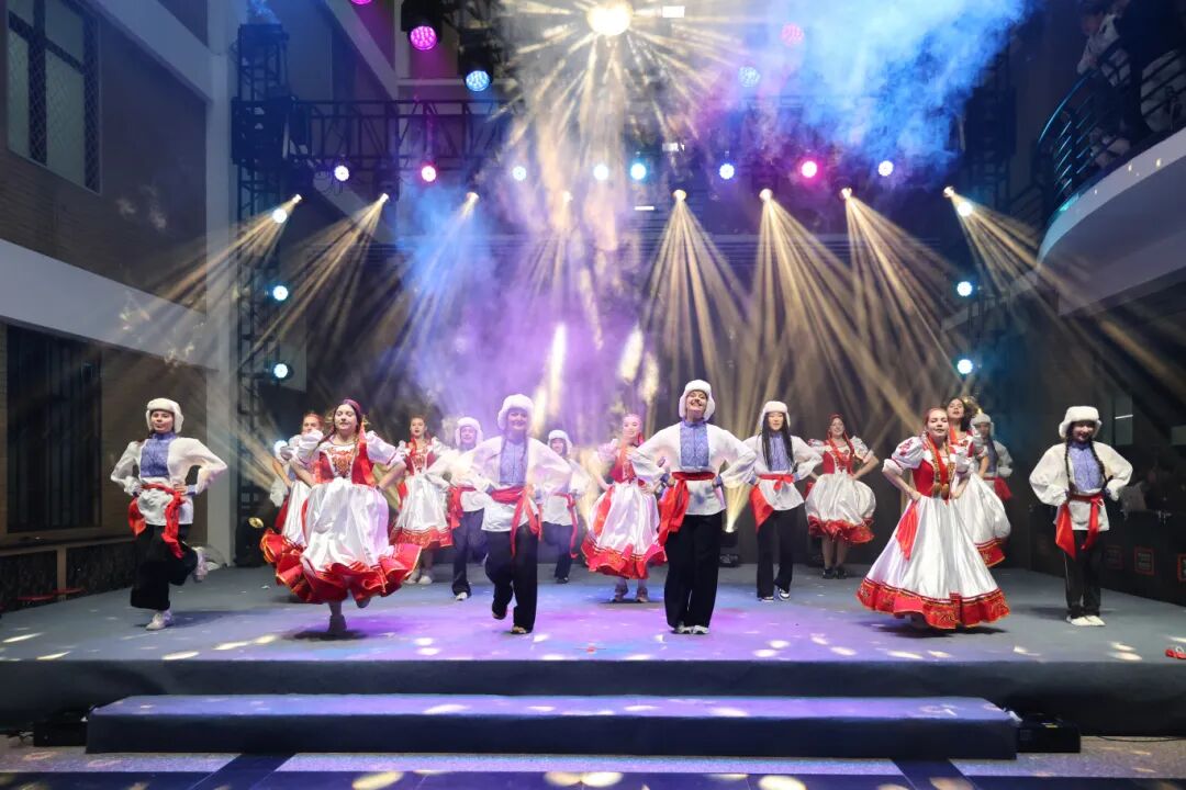 文艺展演环节精彩纷呈,尽显多元文化魅力。留学生集体演绎的中国传统扇子舞《一条大河》拉开序幕,姑娘们身着水墨青色传统服饰,手持绸扇翩翩起舞,金发碧眼间流露地道中国韵味,赢得满堂喝彩。随后,一曲《中国范》点燃现场氛围,25国学子轮番登场,既有非洲、蒙古、俄罗斯等国的民族传统舞蹈,也有韩国现代舞、孟加拉流行歌曲、印度尼西亚摇滚等潮流节目,精湛技艺与独特创意生动展现了各国地域特色与文化风貌。