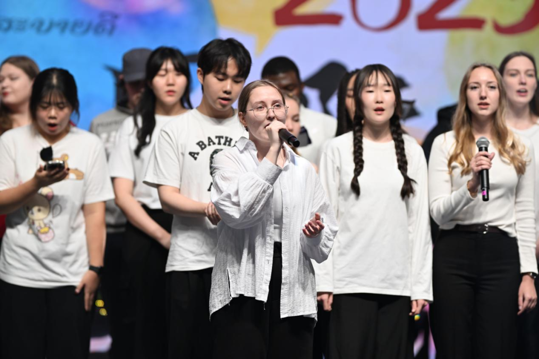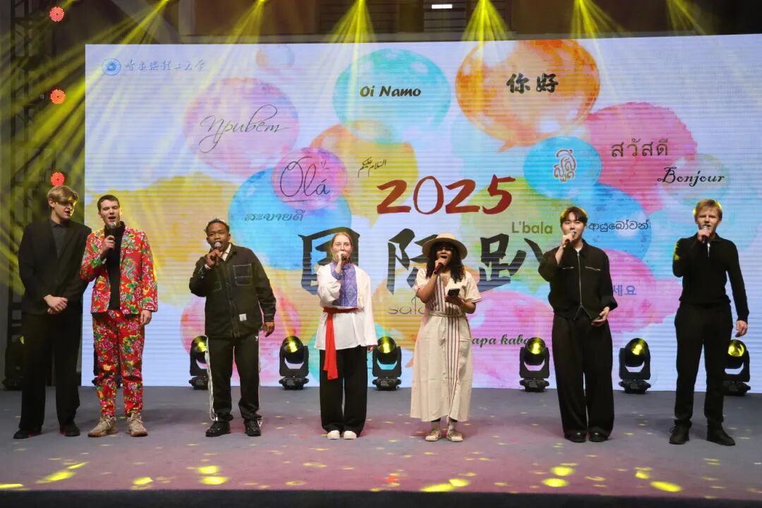 用各国语言演唱中文歌曲、马达加斯加民族舞蹈、土库曼斯坦说唱及中文歌名竞猜等互动环节,将现场氛围推向高潮,充分彰显了年轻学子的蓬勃朝气。活动最后,全体留学生共同唱响《如愿》,全场理工学子齐声附和“与你相约”“见你未见的世界”,用歌声为这场跨文化盛宴画上圆满句号。