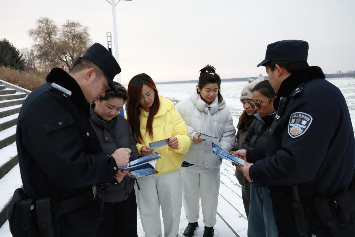 为全面提升群众在流冰期阶段的安全防范意识,鹤岗公安主动联合边境管理、渔政等多个部门,共同向社会发布《流冰期边境管控工作通告》。同时,组织民警深入界江周边居民区、景区及人员易聚集区域,面对面开展安全防护教育,通过案例讲解、风险提示、发放宣传单等形式,耐心引导群众树牢安全警惕意识,自觉远离危险行为。