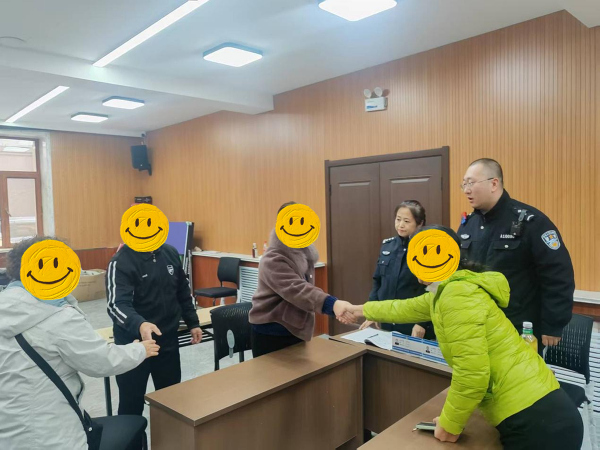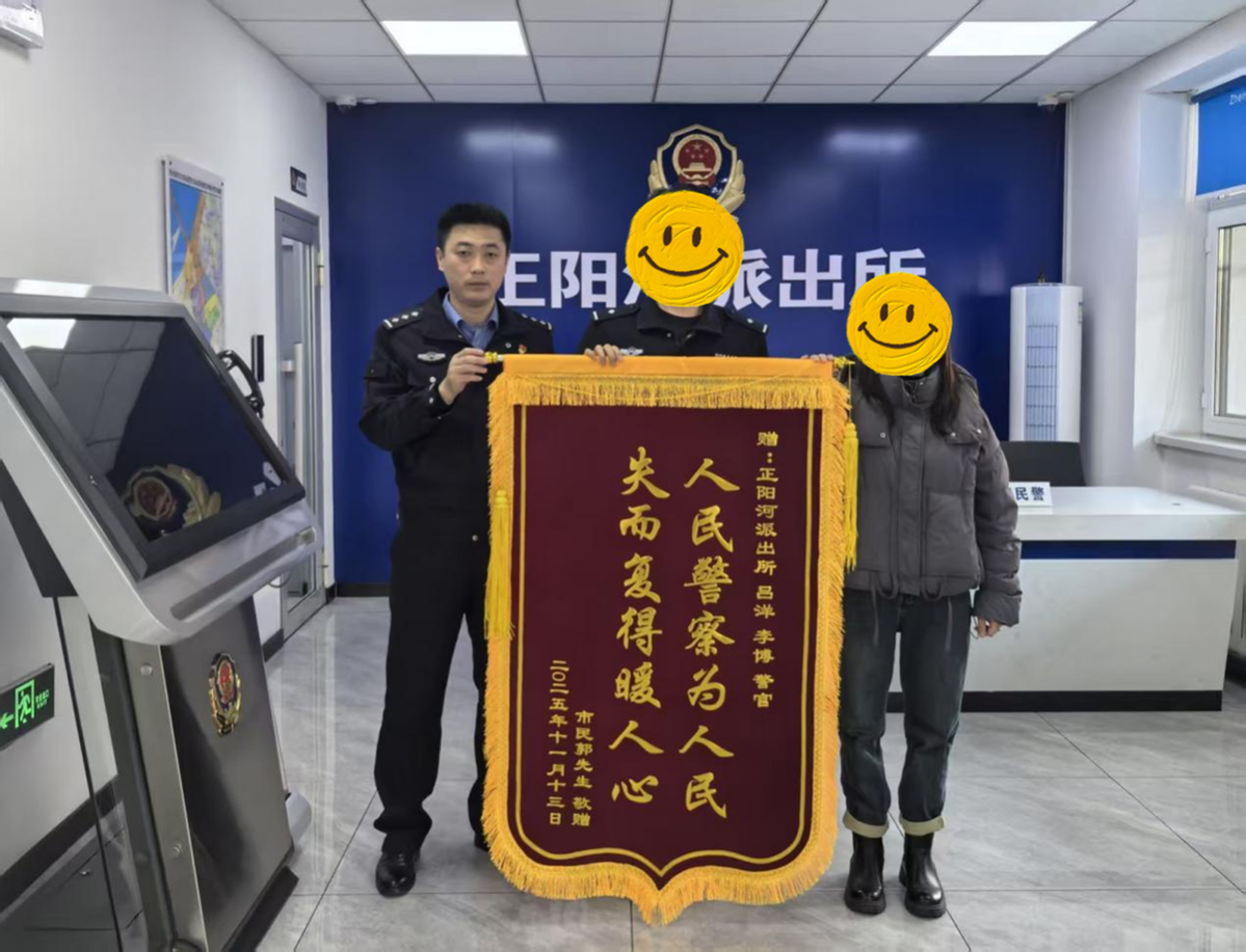 “幸好有你们!要是没找回来,我叔叔这趟哈尔滨之旅都得留下遗憾!”市民于女士手持锦旗,向正阳河派出所民警致谢。11月12日晚间,于女士的外地亲友在某汉庭酒店下车时,将装有4000元现金的背包遗落出租车,因未记车牌紧急求助。出警民警安抚群众情绪、细问乘车细节,通过逐帧比对监控等方法,成功联系上司机。当晚,失主取回背包及现金,分文未少,对民警高效负责的工作态度赞不绝口。