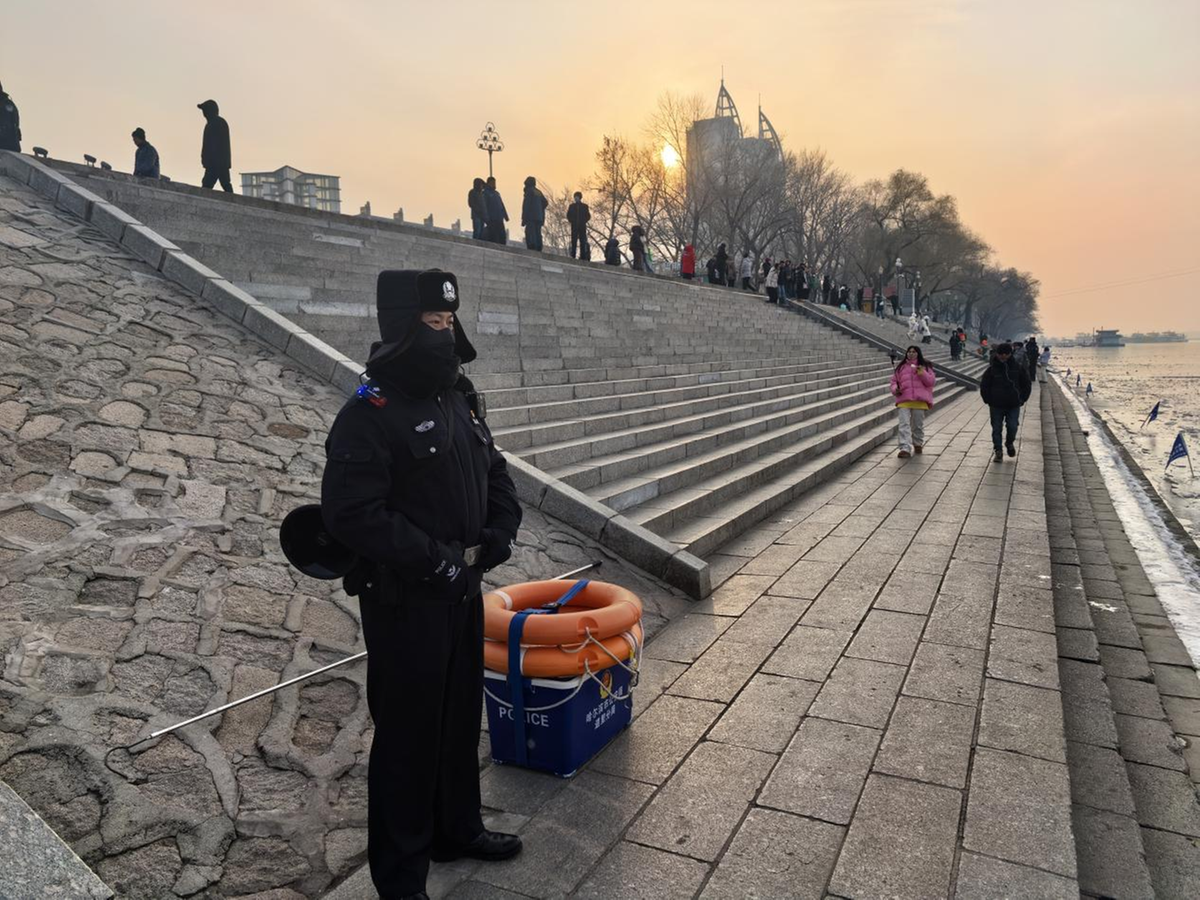 随着气温持续走低,松花江哈尔滨段进入初冻期,冰层薄厚不均且暗藏冰缝,人员涉冰活动风险骤增。为切实保障市民及游客生命安全,哈尔滨市公安局道里分局迅速部署,统筹景区景点、沿江派出所及社区力量,以立体防控、隐患排查、宣传引导为抓手,织密初冬江畔安全防护网。
