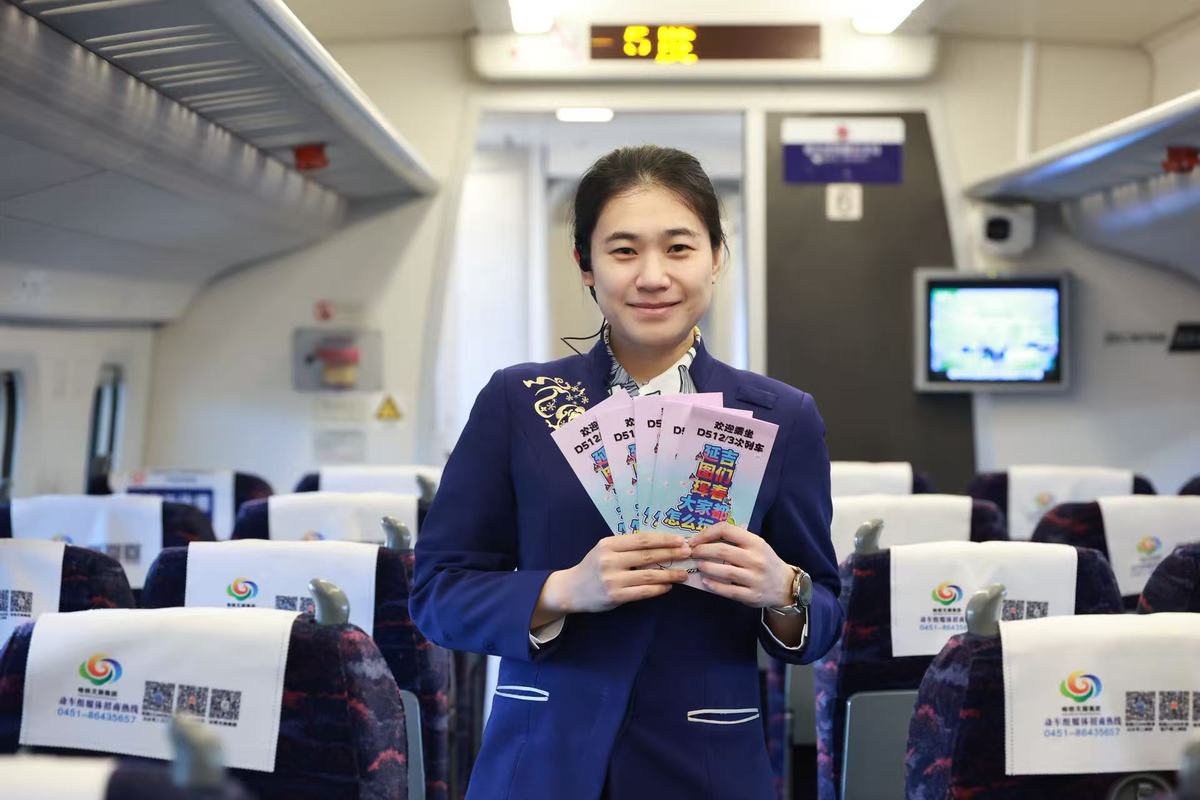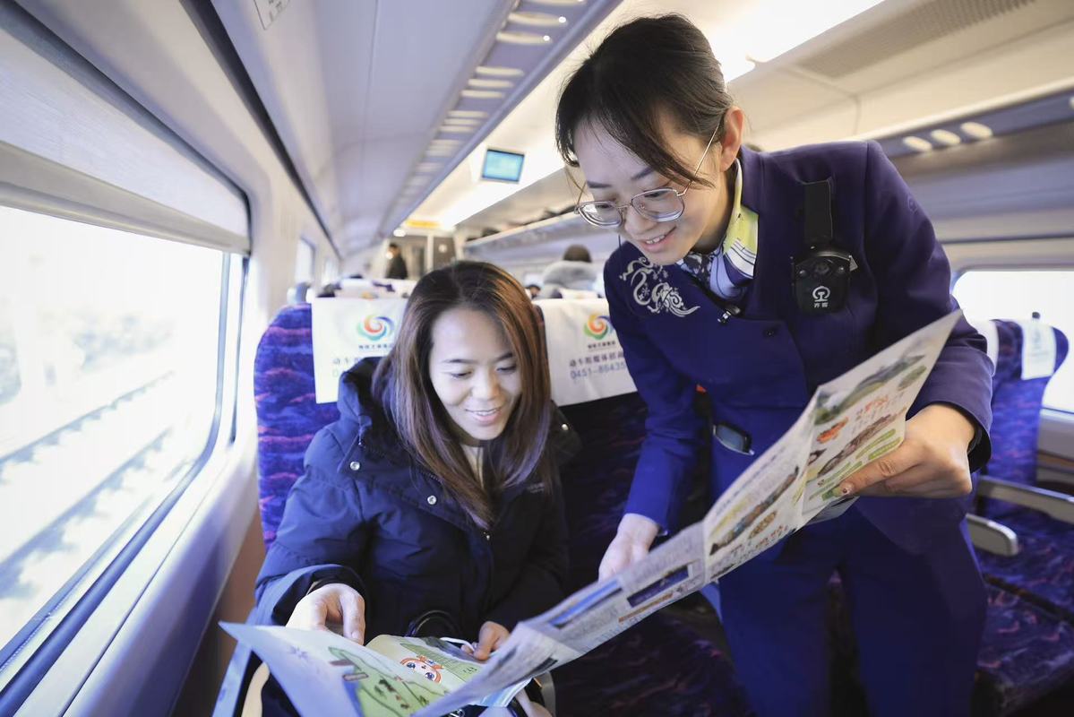 旅客王女士表示:“这趟列车不仅环境干净,还充满了朝鲜族特色,拿到的旅游攻略也特别实用,感觉这次出行体验特别好。” 未来,齐齐哈尔客运段动车一队还将持续优化服务,让 “敖东亲古” 号成为连接民族情谊的温馨纽带。(中国日报黑龙江记者站 编辑:周慧颖)