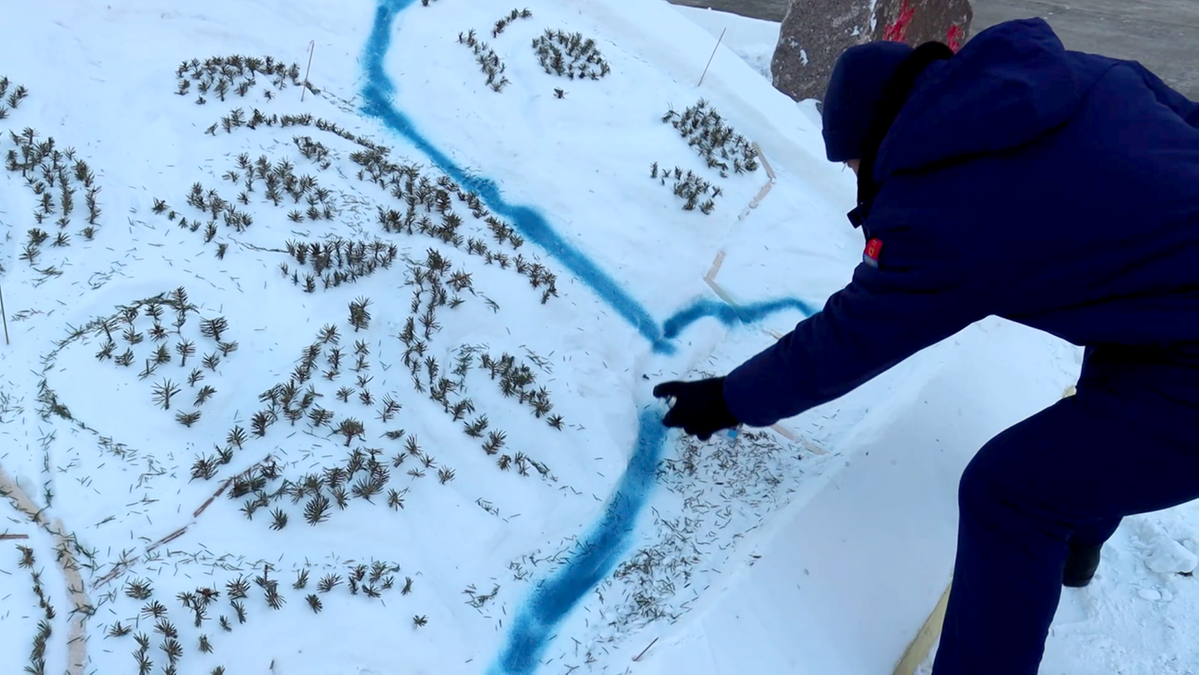 雪雕沙盘创作既能丰富的营区生活,也能缓解训练带来的疲劳感,更倾注着指战员对管护区的真情。只有常年驻守重点防火区,对管护区内的一草一木都了如指掌,才能将每条河流、每条道路以及植被分布用雪雕沙盘完美复刻,指战员在一次次巡山护林中练就的“山里通、铁脚板、活地图”的看家本领在此刻得到了应用和发挥。