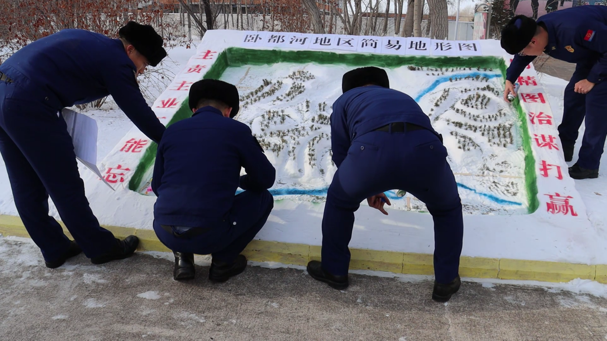 大队最初的想法只是在营区里堆几个雪雕,后来大家聚在一起商量,就碰撞出了不一样的火花,于是决定将练兵元素融入冰雪文化创作,大家一起搜集素材,一起设计方案,以冰雪为材料修雪型、砌雪墙,一起动手将卧都河、麦海两个重点防火区的地形地貌以及道路、河流和植被分布情况,用雪雕沙盘的形式复刻出来,创作出兼具冰雪魅力和练兵主题的特色雪雕沙盘,在装扮营区的同时,为冬季大练兵注入活力。