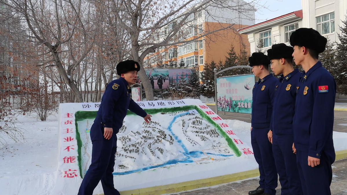 在繁忙的训练之余,近日,黑河市森林消防支队嫩江大队的营区里多了一道靓丽风景,指战员就地取材,用雪和树枝作为原料,按照管护区地形地貌特点在营区里堆起了雪雕沙盘。