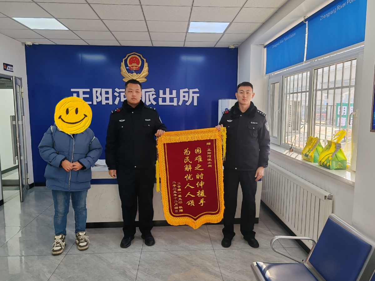 “要不是你们赶来,我家损失就大了!”12月9日上午,辖区居民杨女士捧着锦旗走进正阳河派出所,紧紧握住民警刘庆、董梓琪的手。这面印着“困难之时伸援手 为民解忧人人颂”的锦旗,源于一场深夜救援。12月4日凌晨1时,杨女士家水管崩裂,积水蔓延,她急得哭着报警。民警火速赶到,立刻抓起毛巾堵住漏水口,在积水中摸索找到水闸关闭。冰冷的自来水浸透衣鞋,他们却顾不上冷,又帮忙清理积水,确认无隐患才离开。寒夜虽冷,民警的行动却守住了群众的安心。