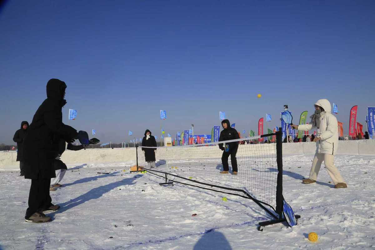 由黑龙江大庆企业自主研制的新型龙舟在冰面上破冰前行,彰显了本土企业产品研发和装备制造潜力;首次亮相的雪地匹克球项目,将新兴运动与冰雪环境巧妙结合,吸引众多市民体验。这些创新项目充分体现了黑龙江在冰雪运动推广上的探索精神。